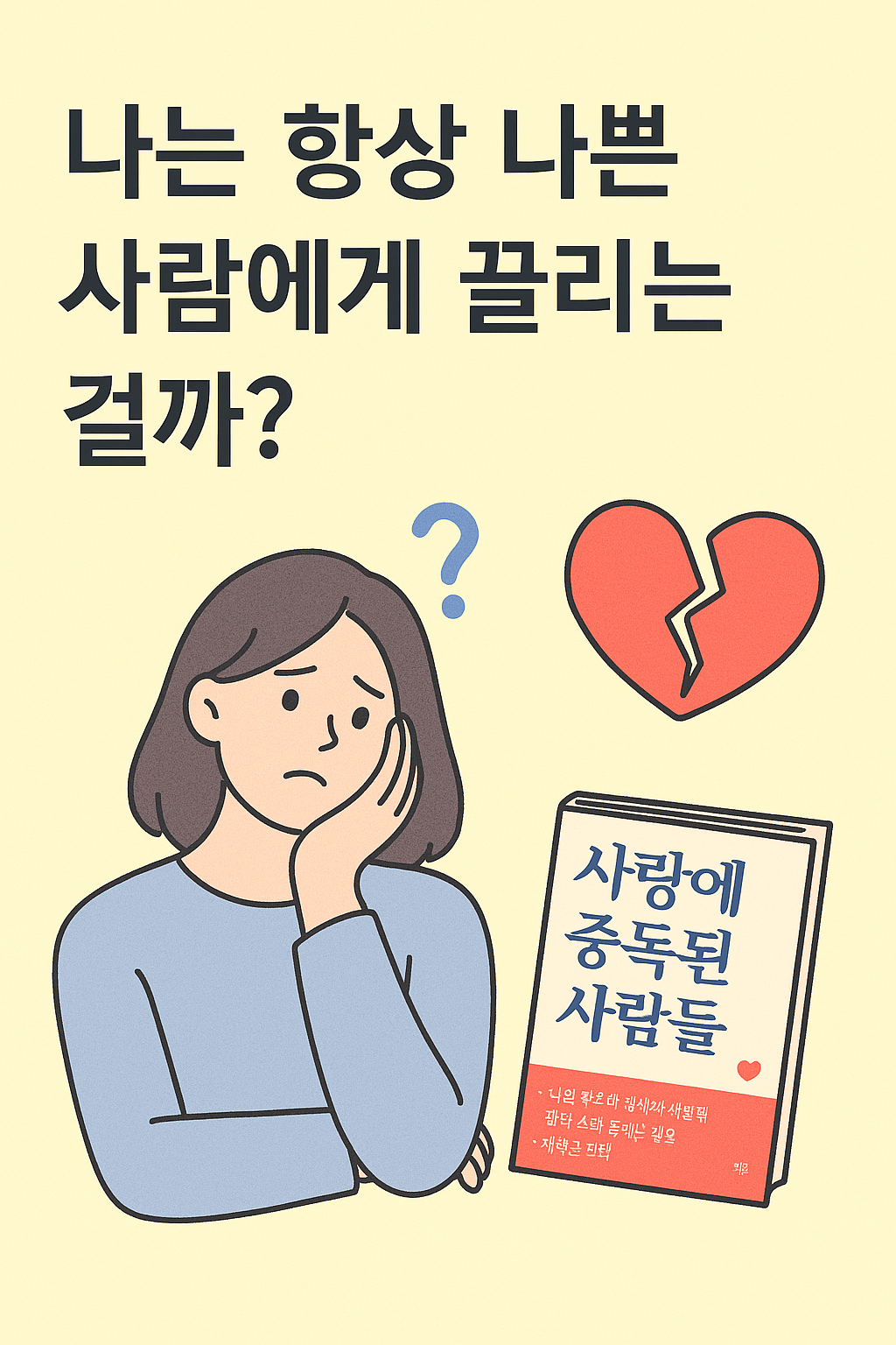 겉으론 괜찮아 보이는데, 연애를 시작할수록 상처가 깊어지는 나… 왜 나는 늘 나를 힘들게 하는 사람에게 끌릴까? 혹시 모르게 ‘나쁜 사람’ 패턴을 반복하고 있는지 지금 확인해보세요. 💘 나쁜 사람에게 끌리는 패턴? 자가진단 테스트 테스트 바로가기 📚 목차 자가진단 체크리스트 (20문항) 결과…